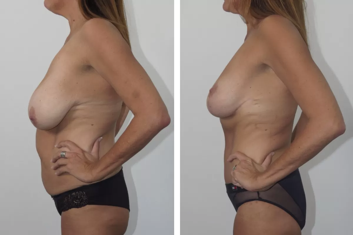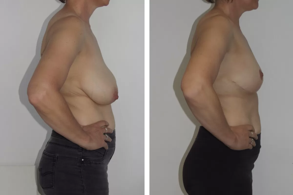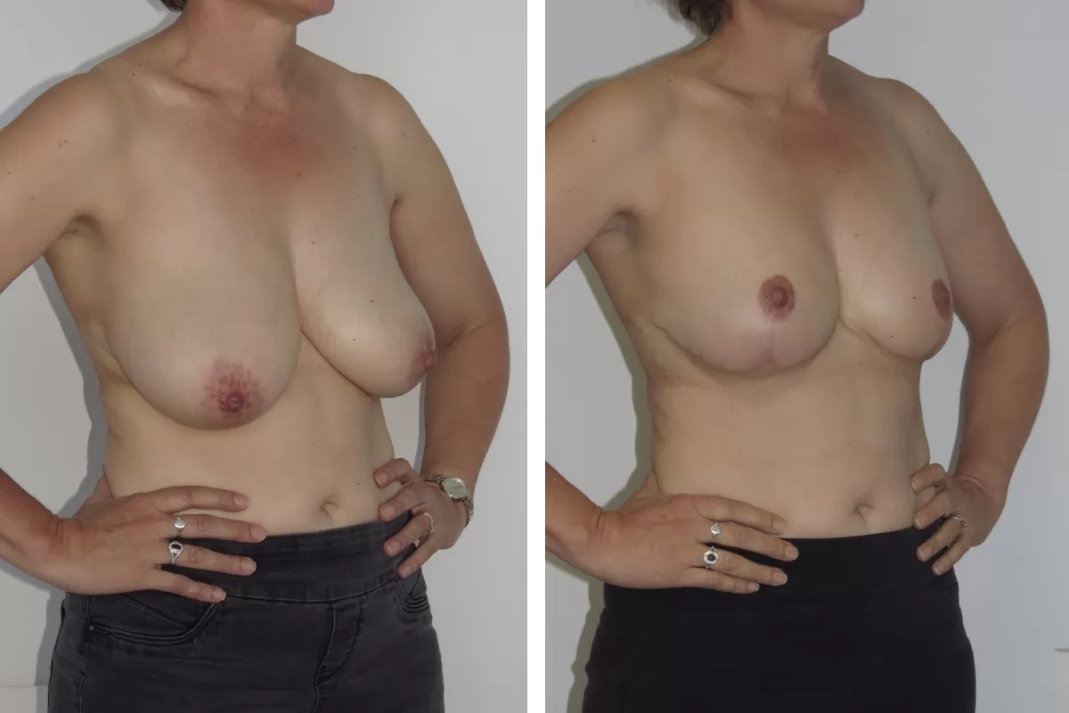 A breast reduction mammaplasty will reduce the volume of the breast and reshape the breast mound. This involves lifting the remaining breast tissue into a position above the fold under the breast and also elevating the nipple at the same time.