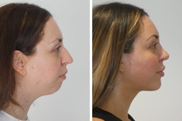 A V-shaped chin is a characteristic feminine feature of the face. It’s when the angle at which the two sides of the jaw converge (at the chin) is more acute and sharp. A broad and wide chin is considered a more masculine feature. Chin trimming contours the chin and makes it V-shaped.