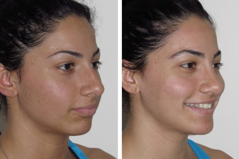 Smiling after a chin implant can feel a little abnormal during the first few days of recovery. Most patients report that they don’t have any problems smiling after 1-2 weeks of the procedure.