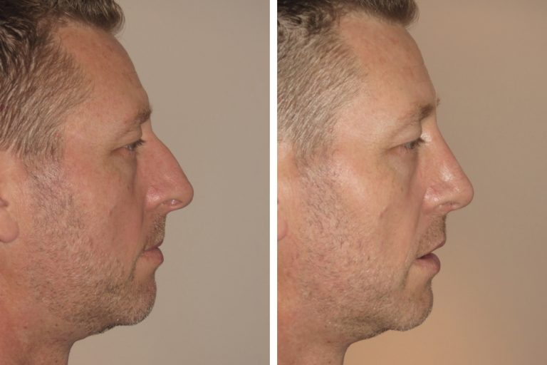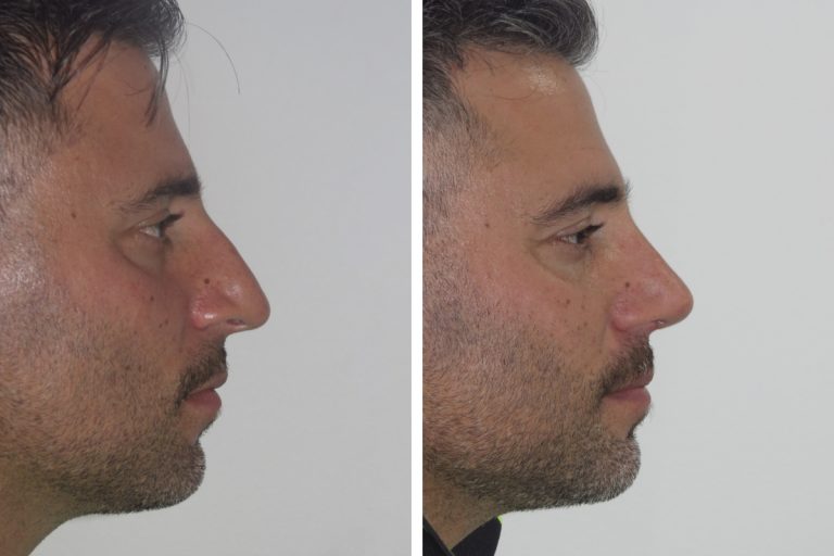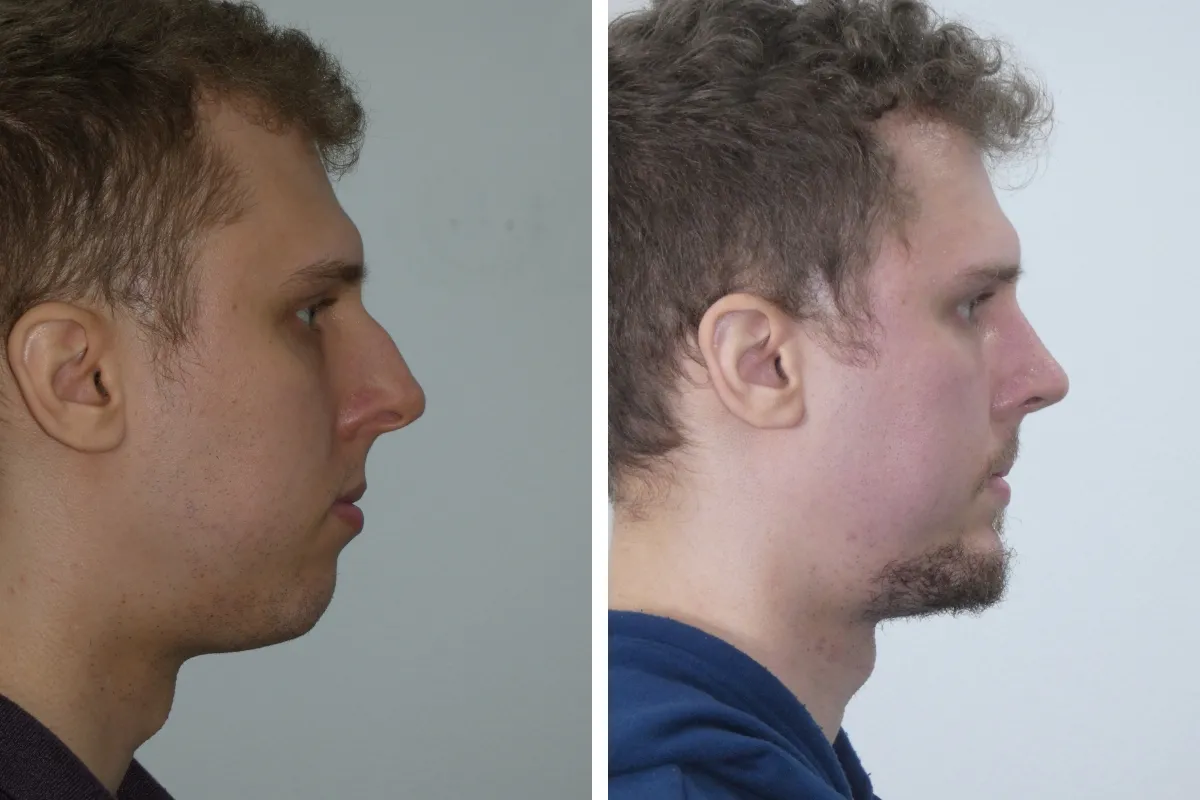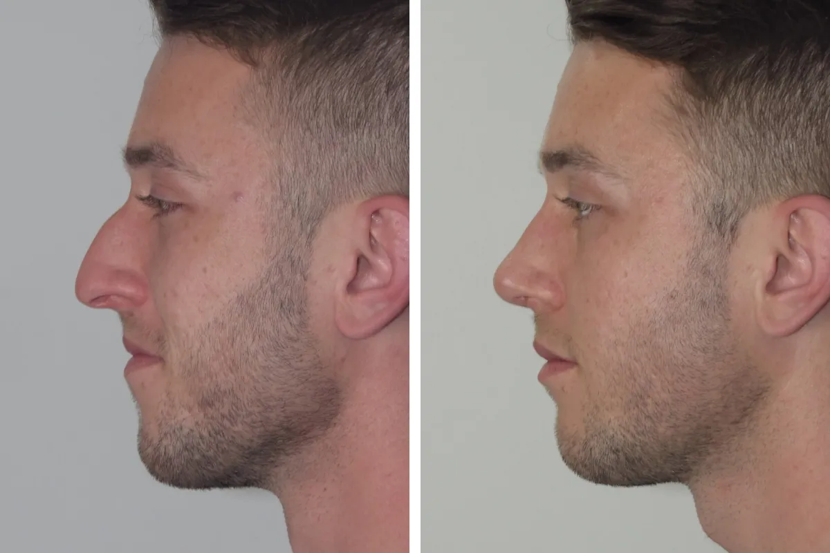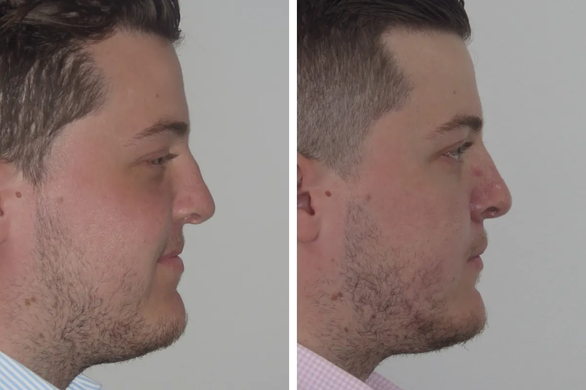 Case Details: 28yo. Modest dorsal hump with over projected tip. Results shown at 2 months.