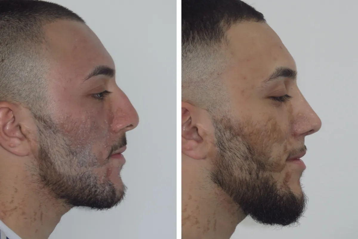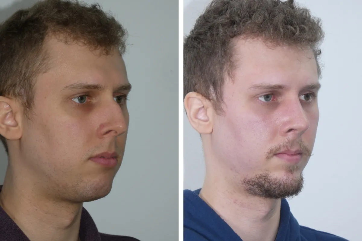Case Details: 25 yo. Aesthetic of nose + function of obstructed airway post trauma. Results shown at 3 months.