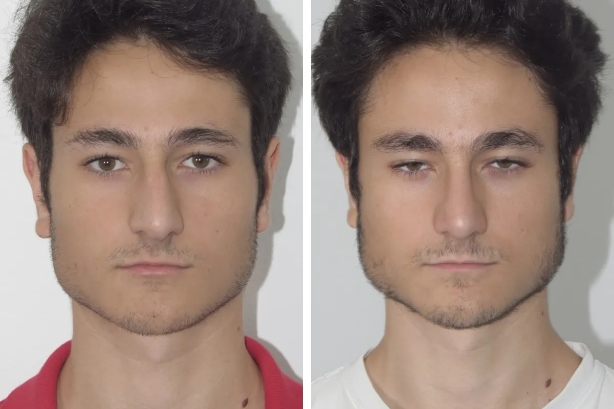 Case Details: 37 yo. Aesthetics of nose + function of obstructed airway. Results shown at 2 months.